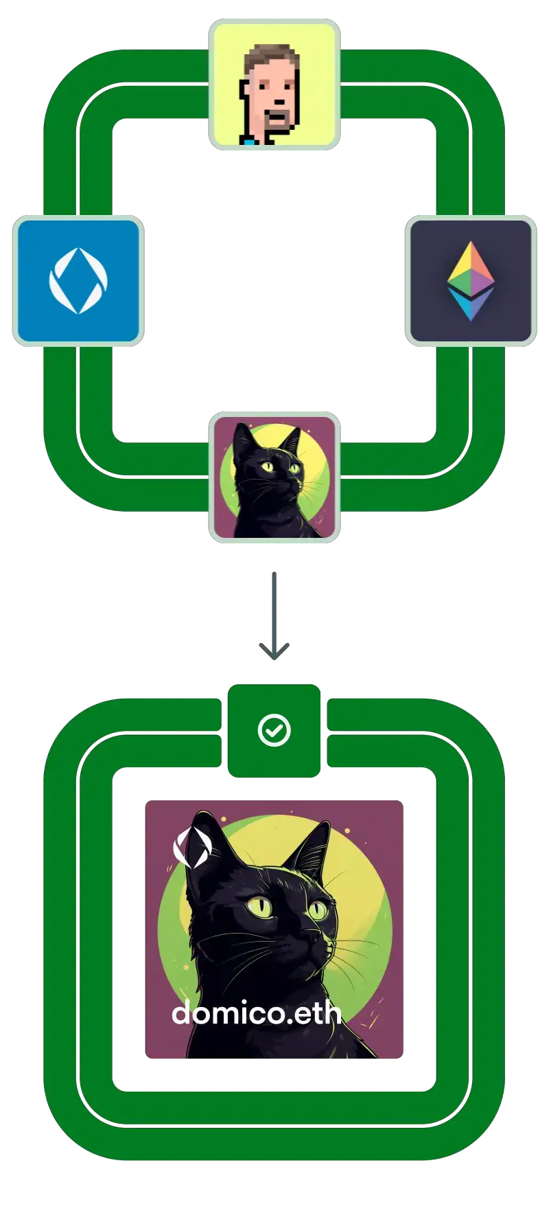 Your ENS name is anchored in Web3, but works across the internet. It's your identity: simple, memorable, unmistakably yours.